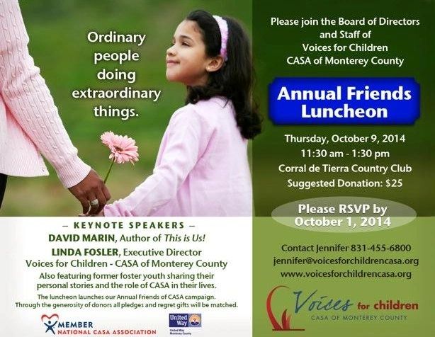 -Linda Fosler, ED of CASA Monterey (Court Appointed Special Advocates) I was the keynote speaker at their annual fund-raiser.